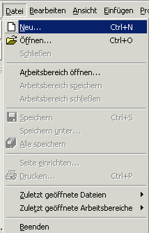 Selektieren Sie Datei / Neu...! Danach erhalten Sie ein Dialogfenster, in welchem der Projekte-Dialog ausgewählt ist. | ||